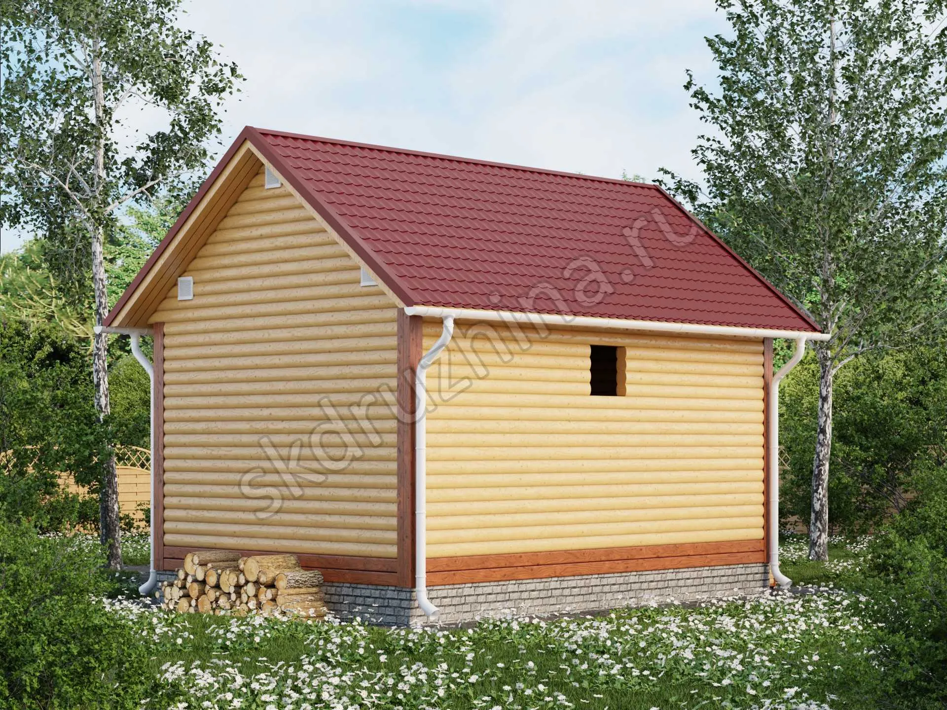 Фундамент в стоимость строительства не входит. Его можно заказать отдельно, на выбор: свайно-винтовой, железобетонные сваи или ленточный. Укажите желаемый тип фундамента при подаче заявки через сайт, или запросите стоимость у наших менеджеров по телефону.