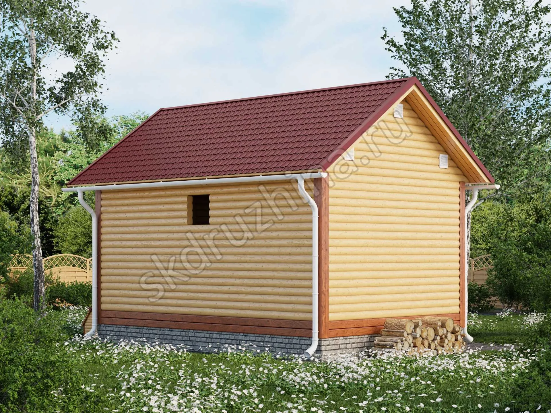Фундамент в стоимость строительства не входит. Его можно заказать отдельно, на выбор: свайно-винтовой, железобетонные сваи или ленточный. Укажите желаемый тип фундамента при подаче заявки через сайт, или запросите стоимость у наших менеджеров по телефону.
