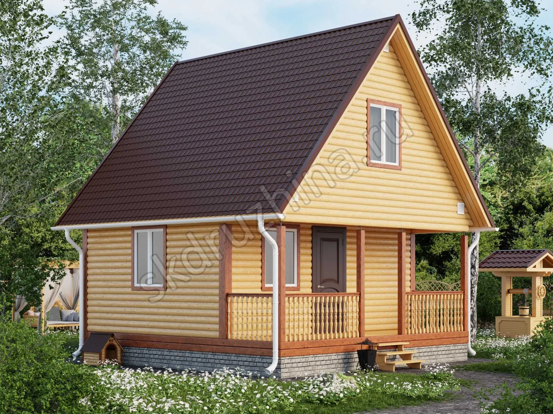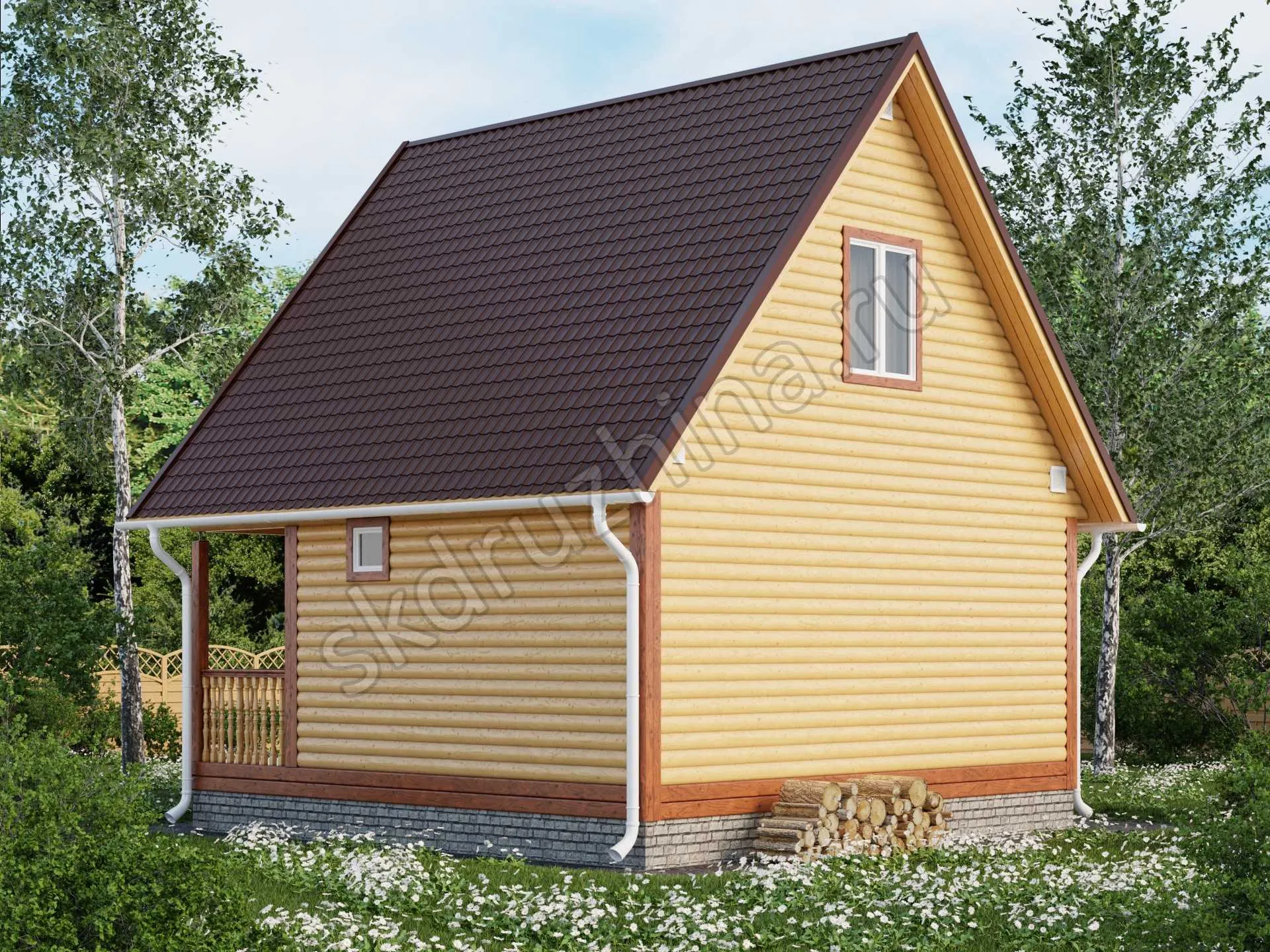Фундамент в стоимость строительства не входит. Его можно заказать отдельно, на выбор: свайно-винтовой, железобетонные сваи или ленточный. Укажите желаемый тип фундамента при подаче заявки через сайт, или запросите стоимость у наших менеджеров по телефону.