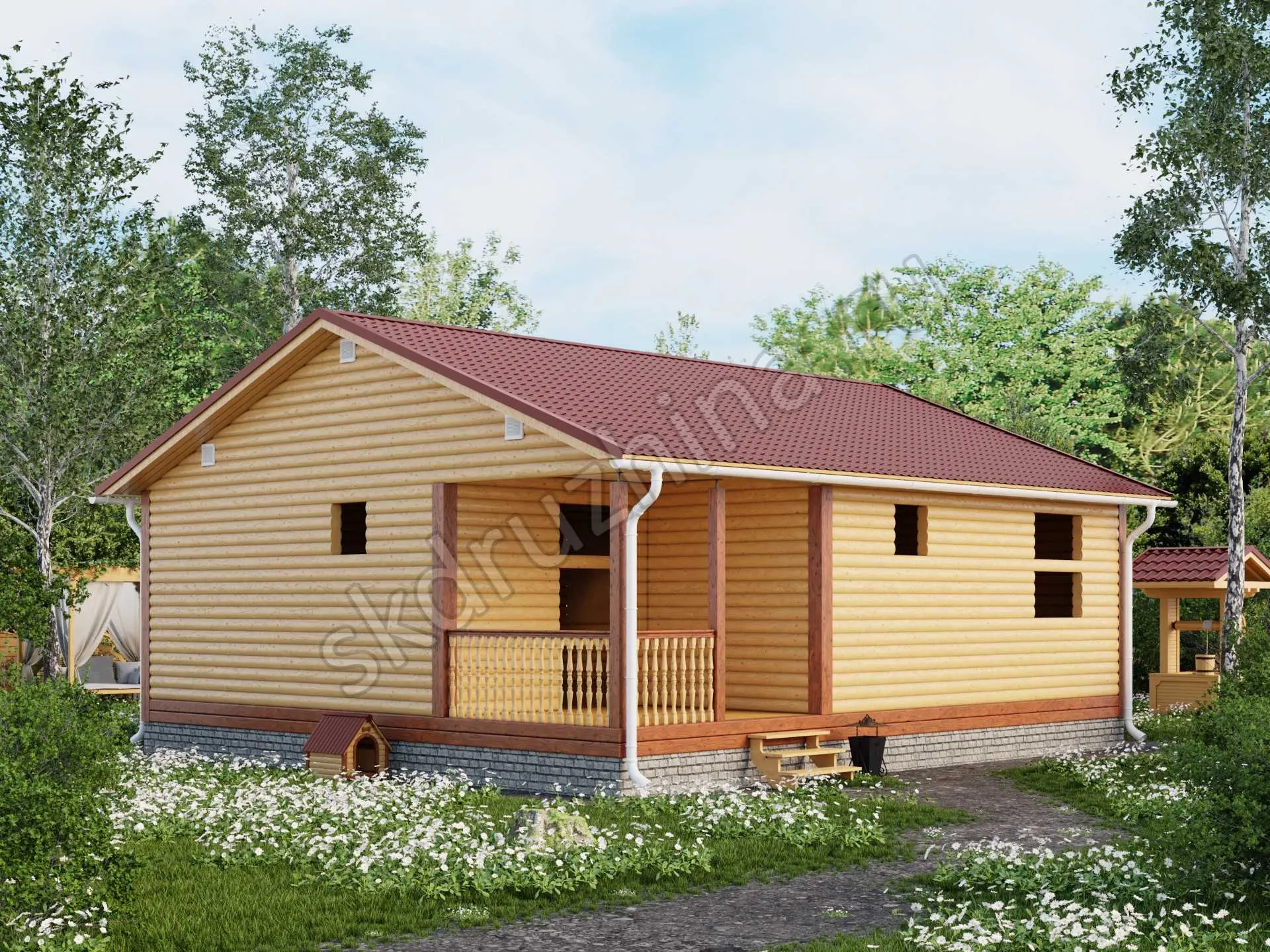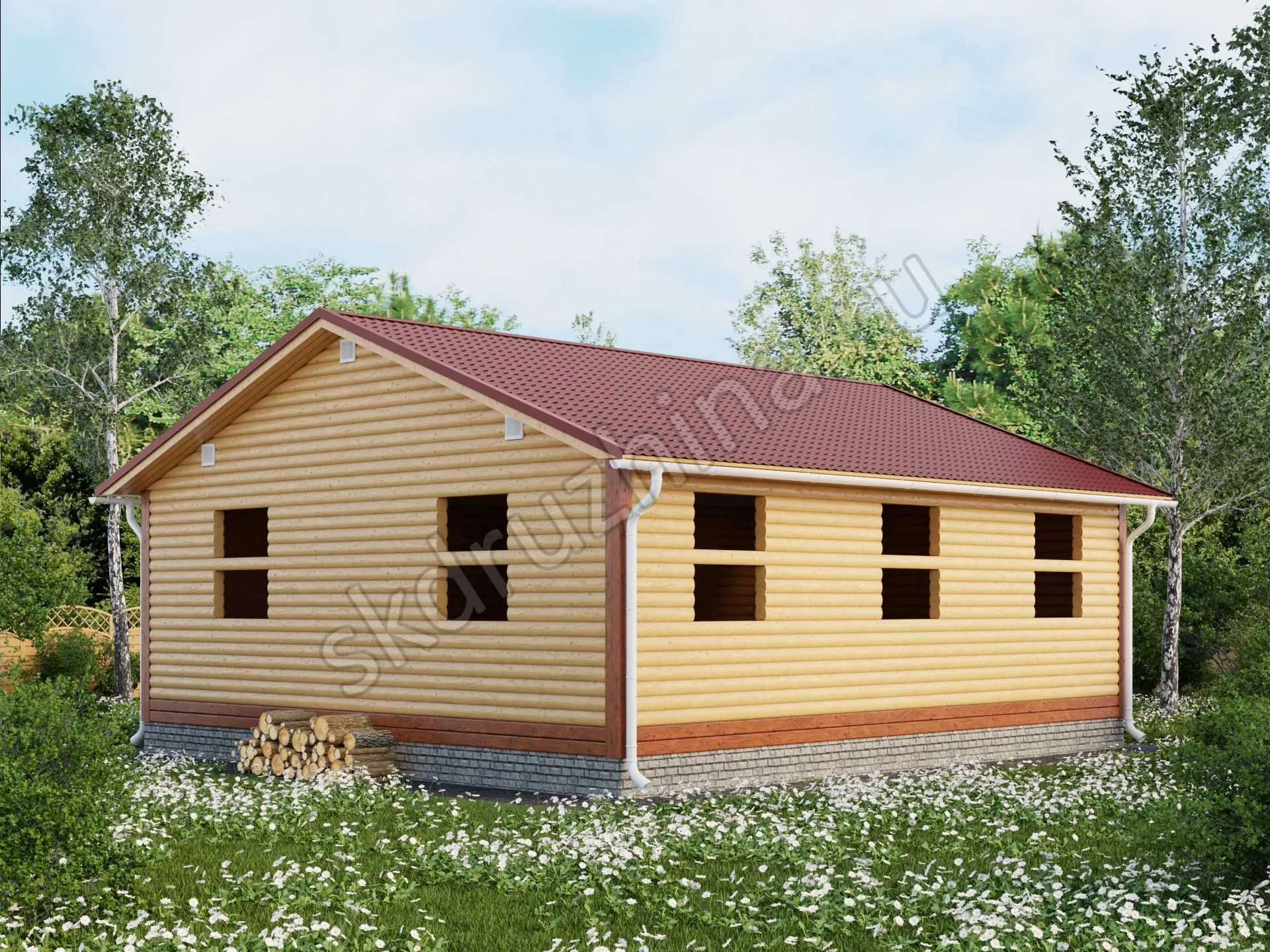 Фундамент в стоимость строительства не входит. Его можно заказать отдельно, на выбор: свайно-винтовой, железобетонные сваи или ленточный. Укажите желаемый тип фундамента при подаче заявки через сайт, или запросите стоимость у наших менеджеров по телефону.