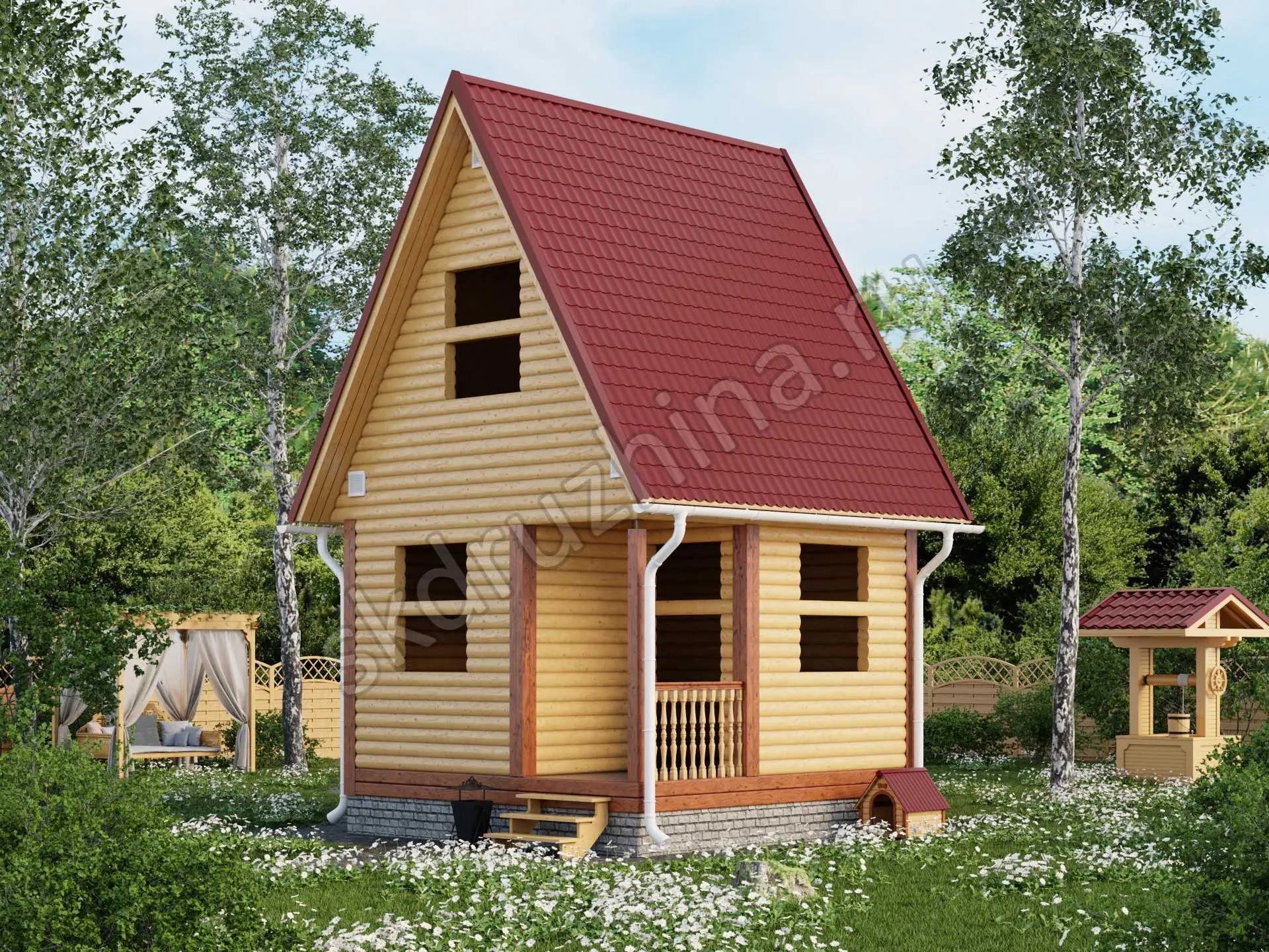 Фундамент в стоимость строительства не входит. Его можно заказать отдельно, на выбор: свайно-винтовой, железобетонные сваи или ленточный. Укажите желаемый тип фундамента при подаче заявки через сайт, или запросите стоимость у наших менеджеров по телефону.