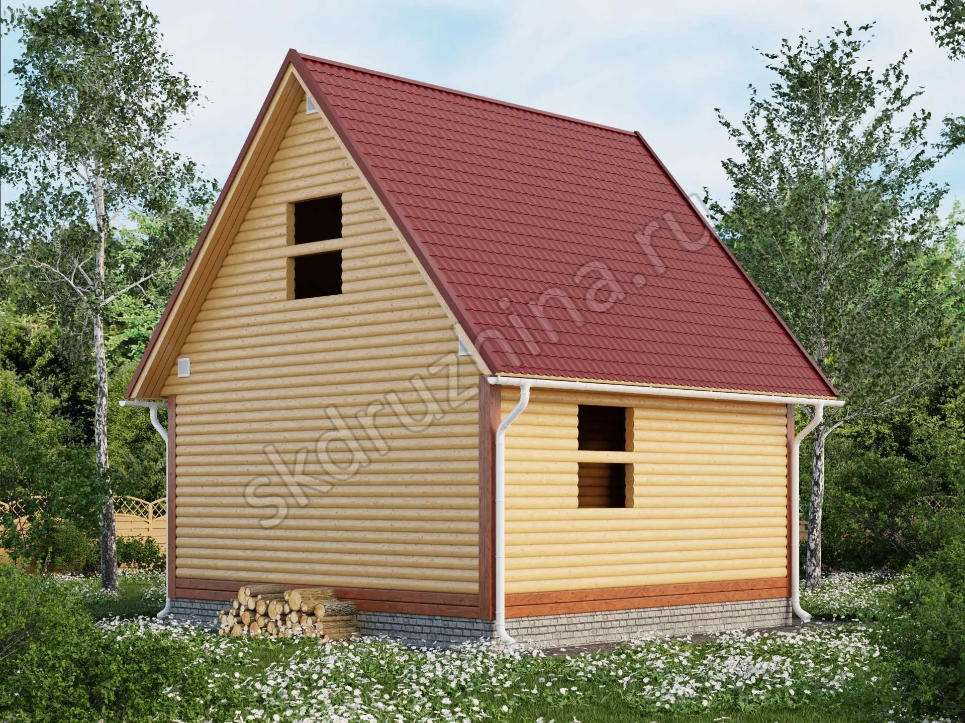 Фундамент в стоимость строительства не входит. Его можно заказать отдельно, на выбор: свайно-винтовой, железобетонные сваи или ленточный. Укажите желаемый тип фундамента при подаче заявки через сайт, или запросите стоимость у наших менеджеров по телефону.