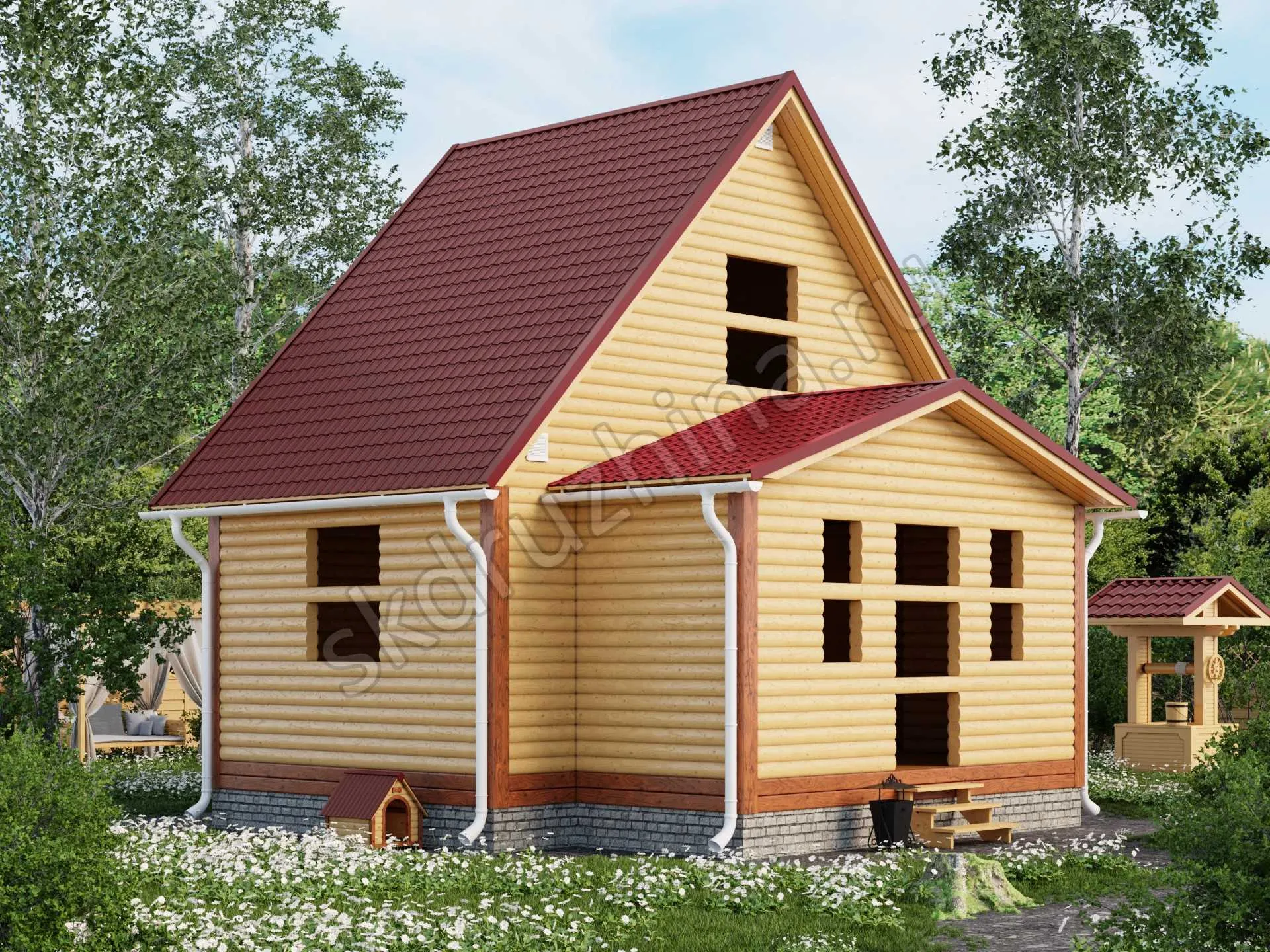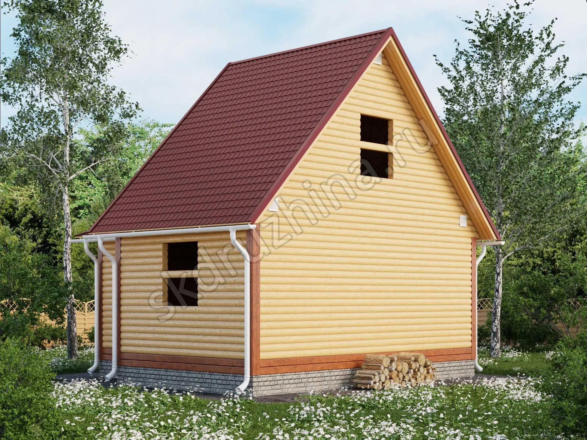 Фундамент в стоимость строительства не входит. Его можно заказать отдельно, на выбор: свайно-винтовой, железобетонные сваи или ленточный. Укажите желаемый тип фундамента при подаче заявки через сайт, или запросите стоимость у наших менеджеров по телефону.