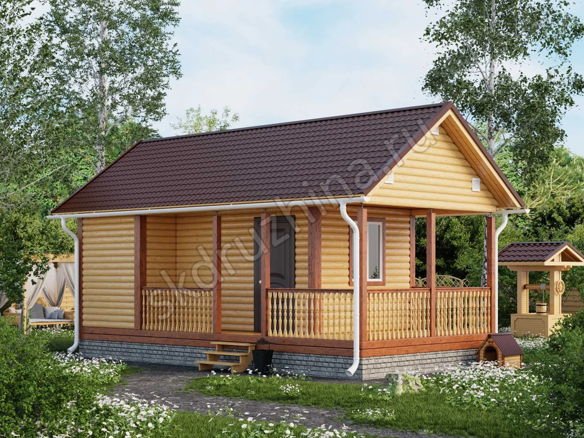 профилированный брус 90×140 мм, 140×140 мм или 190х140 мм (атмосферной сушки), с наружней стороны прямой или под блок-хаус, с внутренней — прямой.