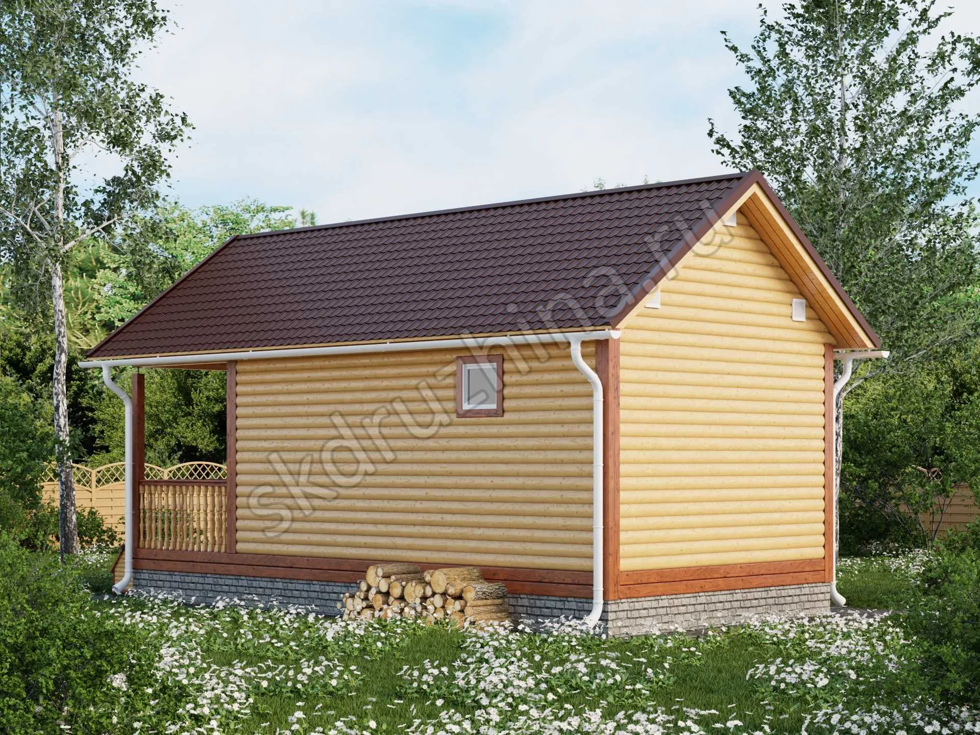 Двухскатная (прямая или ломанная в зависимости от проекта). В одноэтажной бане прямая (высота конька 1,2-1,5м)