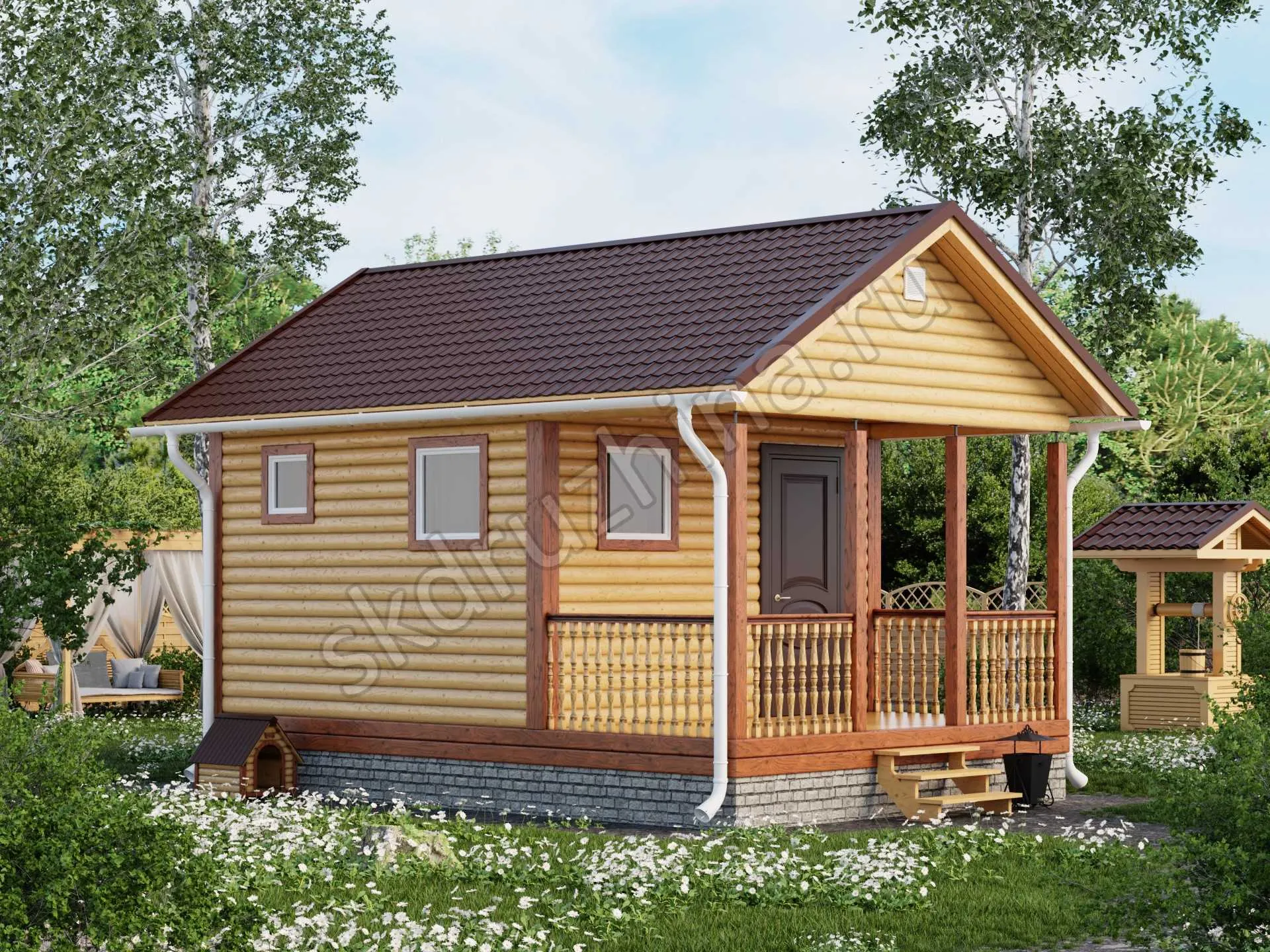 Фундамент в стоимость строительства не входит. Его можно заказать отдельно, на выбор: свайно-винтовой, железобетонные сваи или ленточный. Укажите желаемый тип фундамента при подаче заявки через сайт, или запросите стоимость у наших менеджеров по телефону.