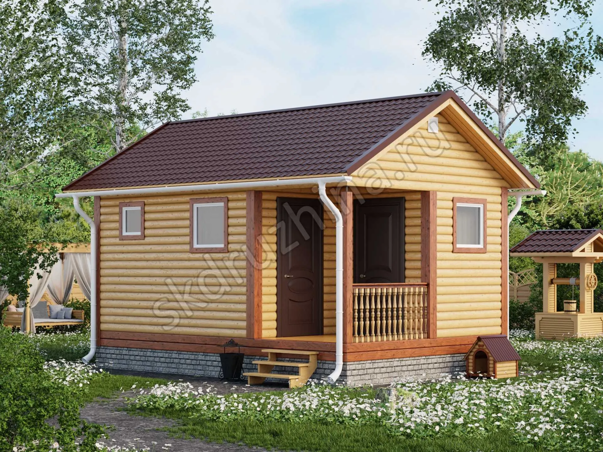 Фундамент в стоимость строительства не входит. Его можно заказать отдельно, на выбор: свайно-винтовой, железобетонные сваи или ленточный. Укажите желаемый тип фундамента при подаче заявки через сайт, или запросите стоимость у наших менеджеров по телефону.