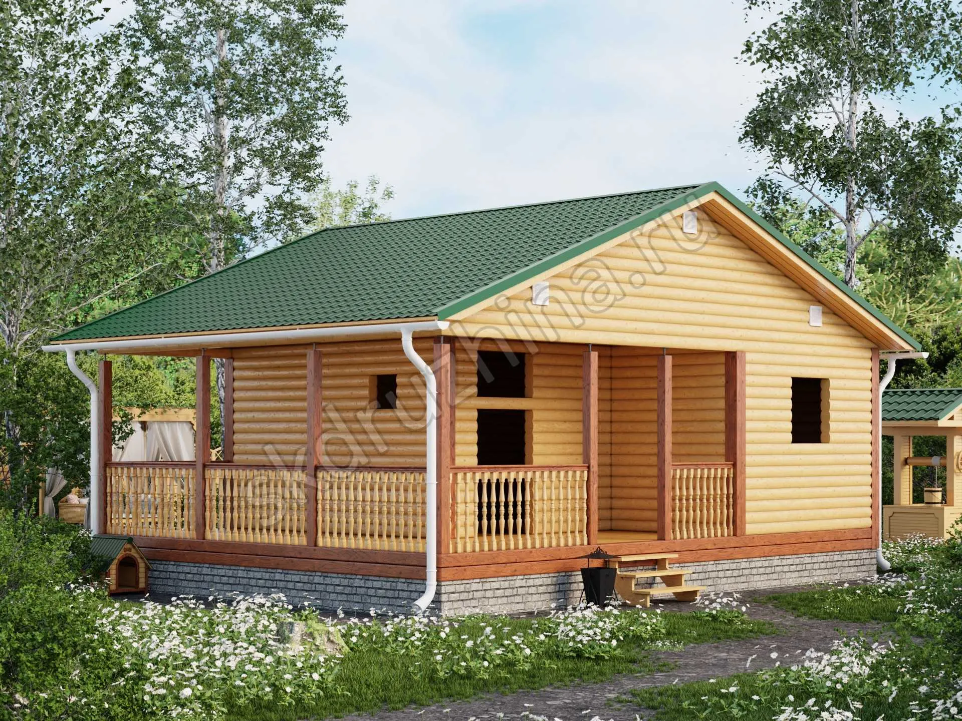 профилированный брус 90×140 мм, 140×140 мм или 190х140 мм (атмосферной сушки), с наружной стороны прямой или под блок-хаус, с внутренней — прямой.