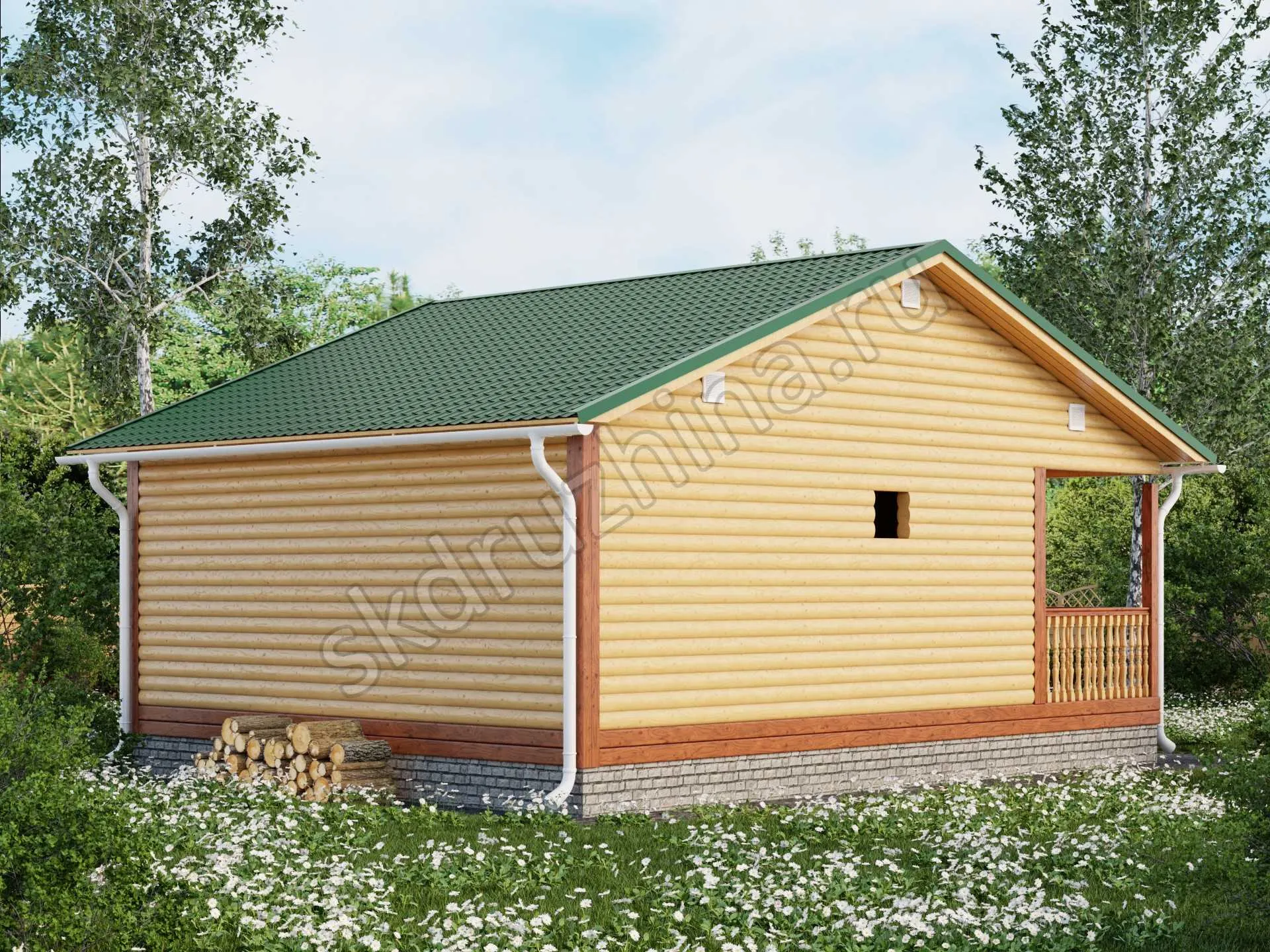 брус 100×150 мм , 150×150 мм или 200х150 мм (атмосферной сушки), зависит из какого бруса будет собираться баня (обрабатывается антисептиком).