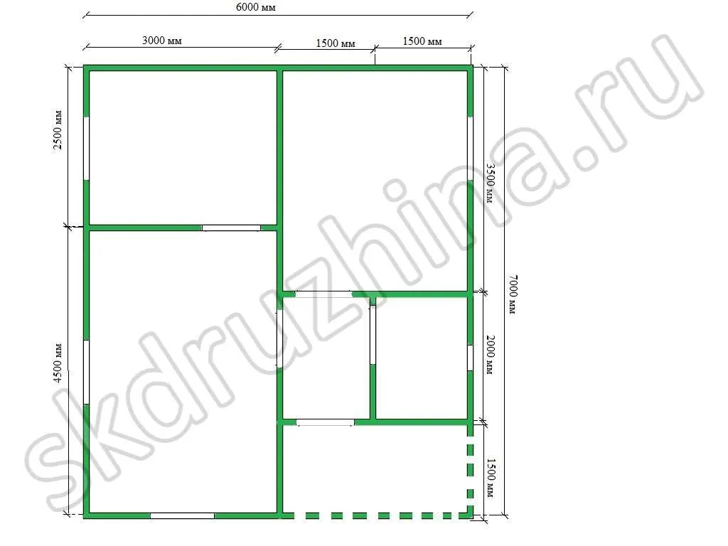 Проект можно изменить под Ваши задачи. Добавить/убрать стены, переместить окна/двери, изменить форму кровли.