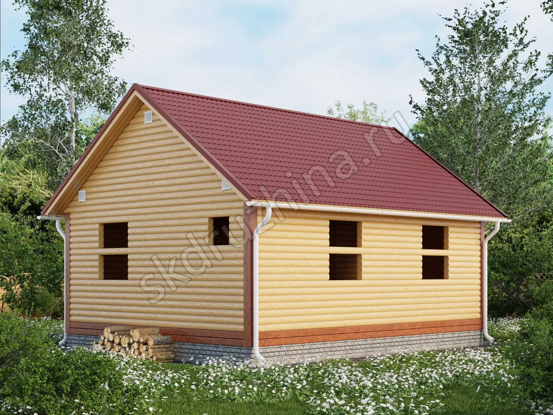 Фундамент в стоимость строительства не входит. Его можно заказать отдельно, на выбор: свайно-винтовой, железобетонные сваи или ленточный. Укажите желаемый тип фундамента при подаче заявки через сайт, или запросите стоимость у наших менеджеров по телефону.