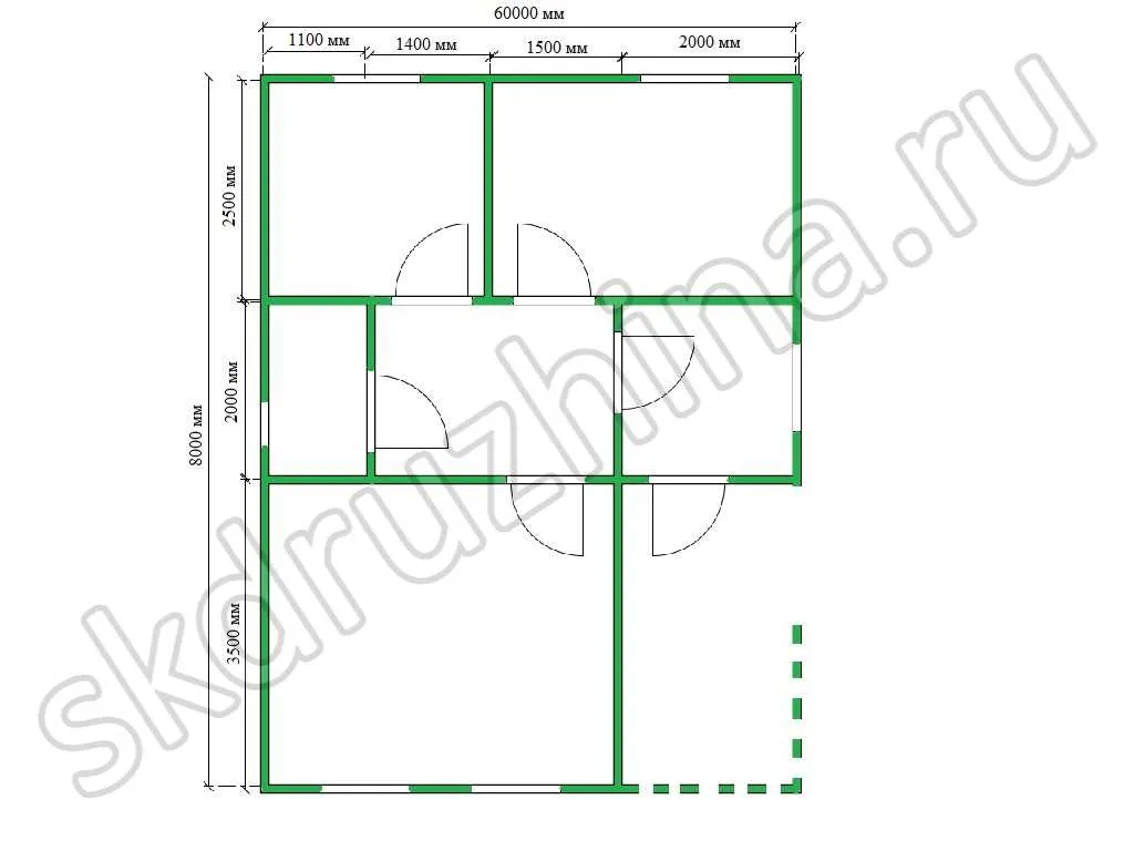 Проект можно изменить под Ваши задачи. Добавить/убрать стены, переместить окна/двери, изменить форму кровли.