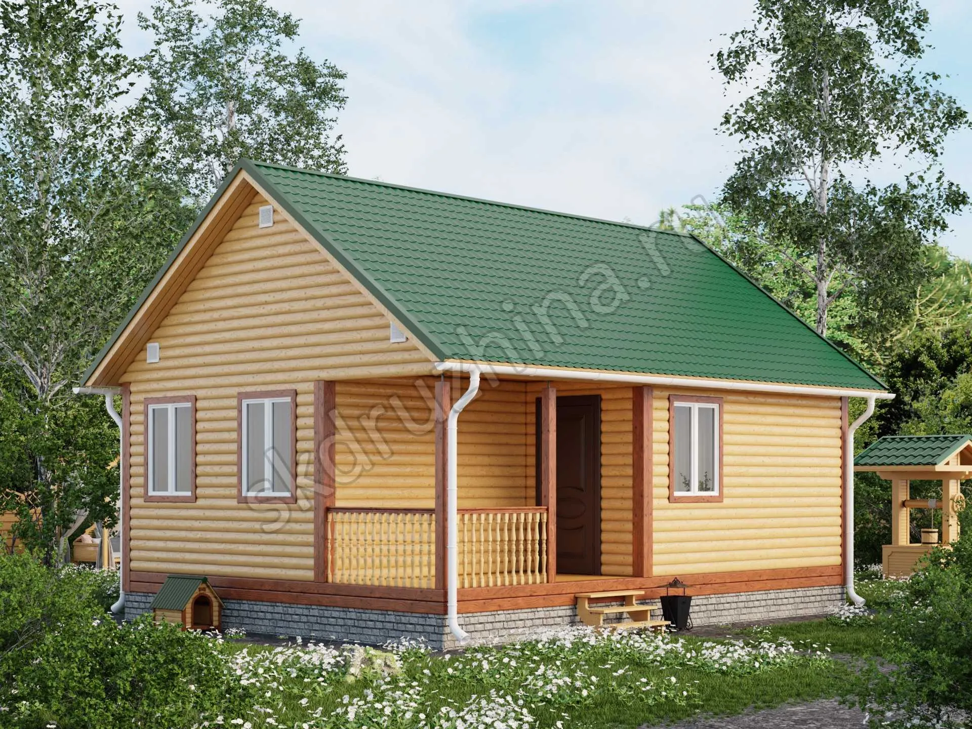профилированный брус 90×140 мм, 140×140 мм или 190х140 мм (атмосферной сушки), с наружней стороны прямой или под блок-хаус, с внутренней — прямой.