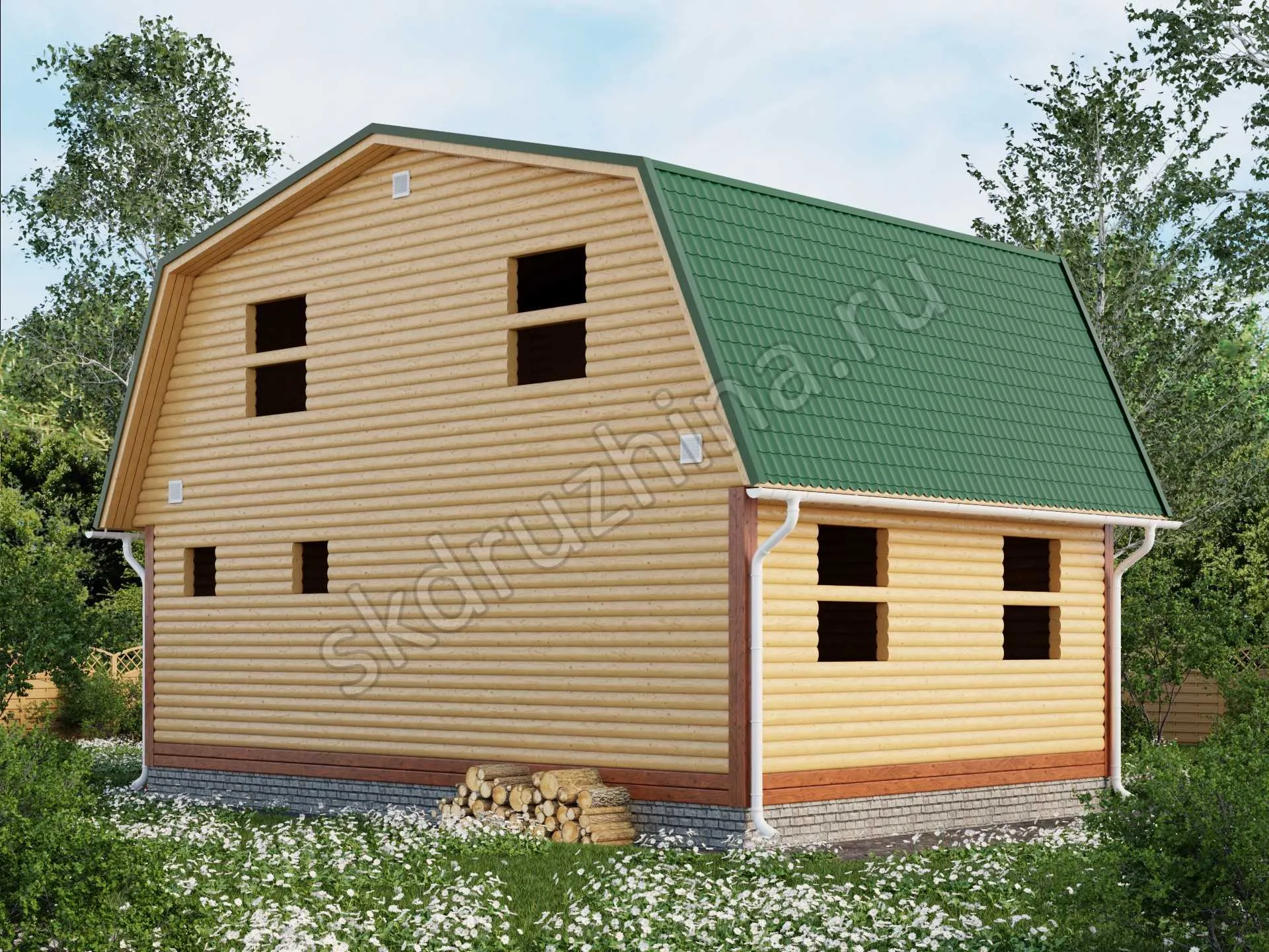 Фундамент в стоимость строительства не входит. Его можно заказать отдельно, на выбор: свайно-винтовой, железобетонные сваи или ленточный. Укажите желаемый тип фундамента при подаче заявки через сайт, или запросите стоимость у наших менеджеров по телефону.