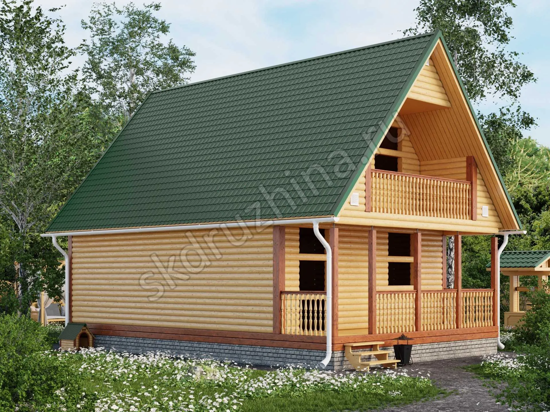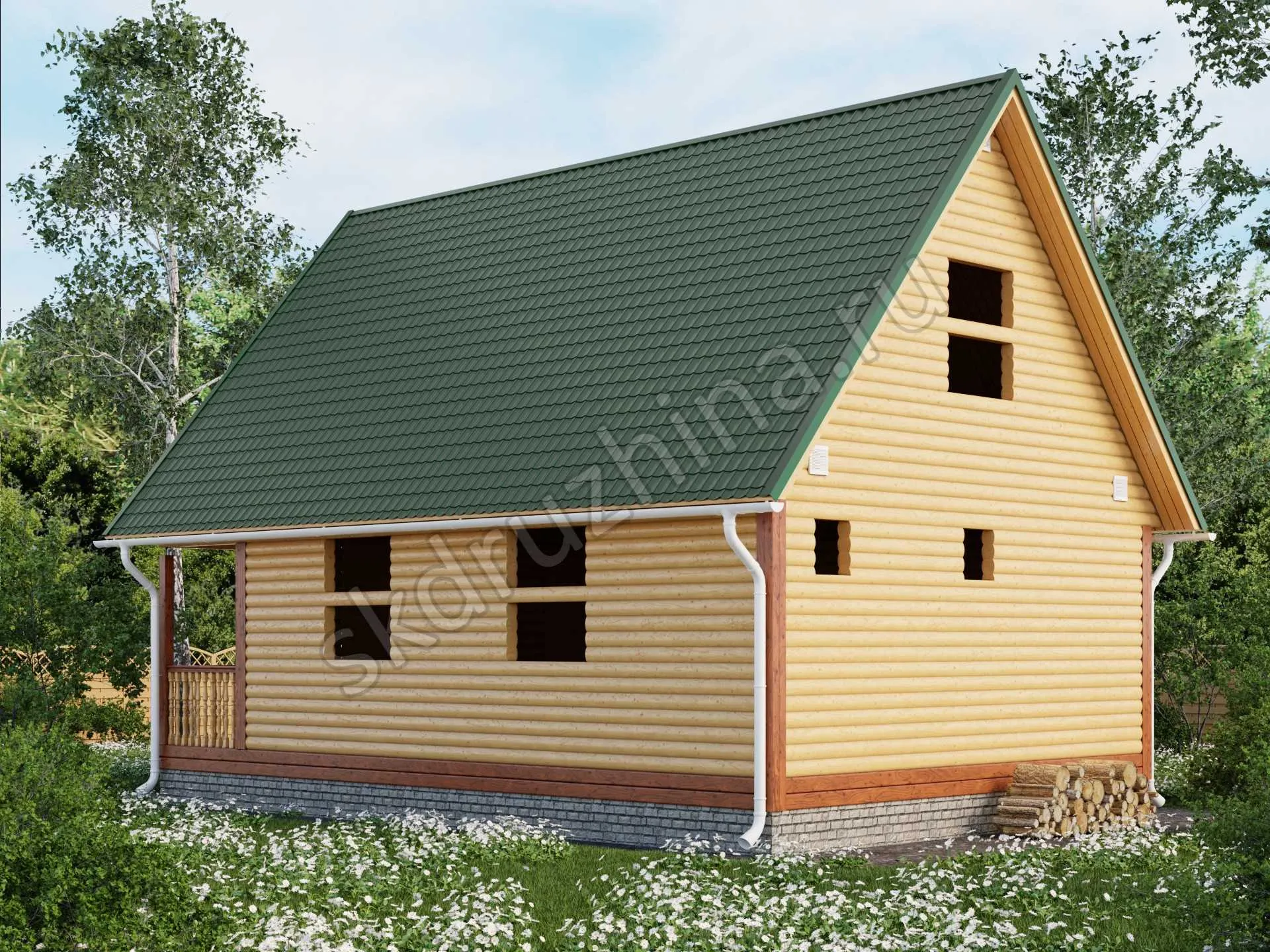 профилированный брус 90×140 мм, 140×140 мм или 190х140 мм (атмосферной сушки), с наружной стороны прямой или под блок-хаус, с внутренней — прямой.