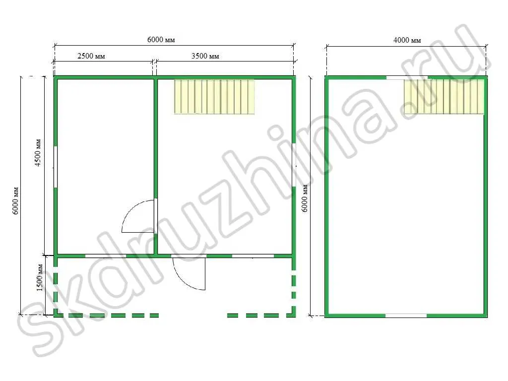 каркас (брусок 40×100 мм (атмосферной сушки), обшиты горизонтально вагонкой камерной сушки.